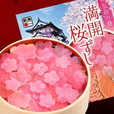 主な販売駅:八戸駅 紅ずわい蟹の棒肉に、イクラ、鮭フレークをのせた贅沢なお弁当。 〇弘前の春 満開桜ずし…1,350円