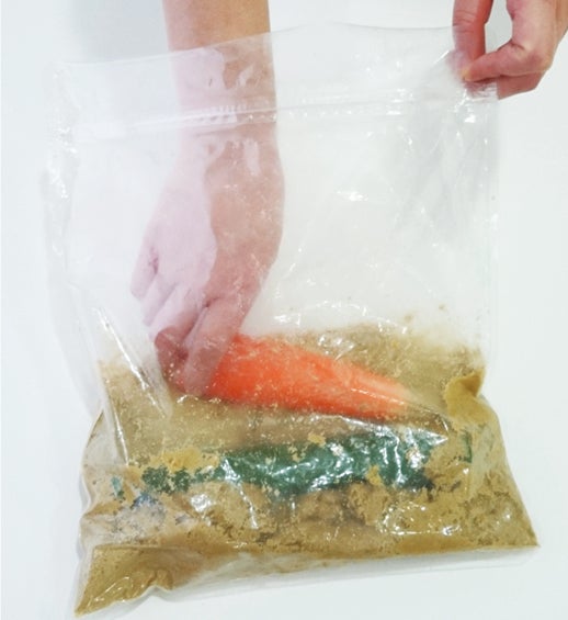 ・混ぜたその日から、野菜を漬けることが可能。好みの野菜(ニンジン、キュウリ、大根など)を入れ、冷蔵庫で24時間寝かせます。 全ての原材料が微粉末、旨みが野菜にしっかり浸透します