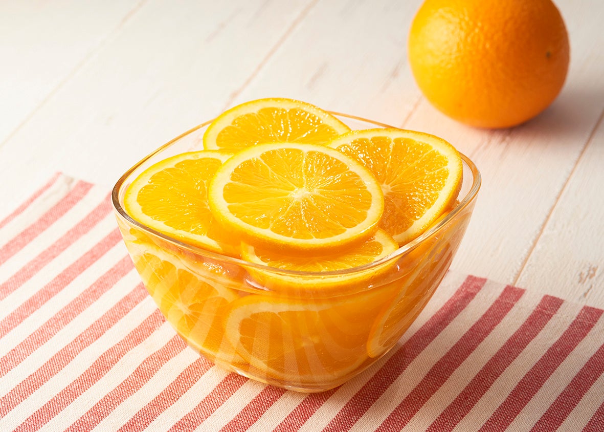 糖蜜に漬け込むことで、オレンジの皮が柔らかくなり、皮ごと食べられます。