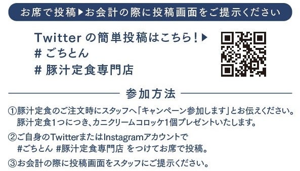 ①豚汁定食のご注文時にスタッフへ「キャンペーン参加します」とお伝えください。