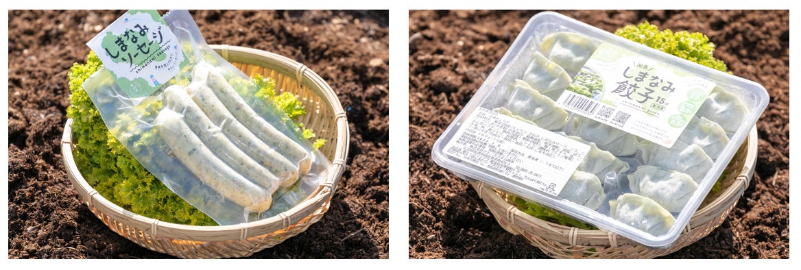 しまなみリーフを年中味わっていただけるよう、おいしさをギュッととじこめた「しまなみソーセージ」「しまなみ餃子」も販売スタート。JA尾道市の直売所(ええじゃん尾道、ええじゃん向島)、道の駅(みはら、たけはら、クロスロードみつぎ)でお買い求めいただけます。