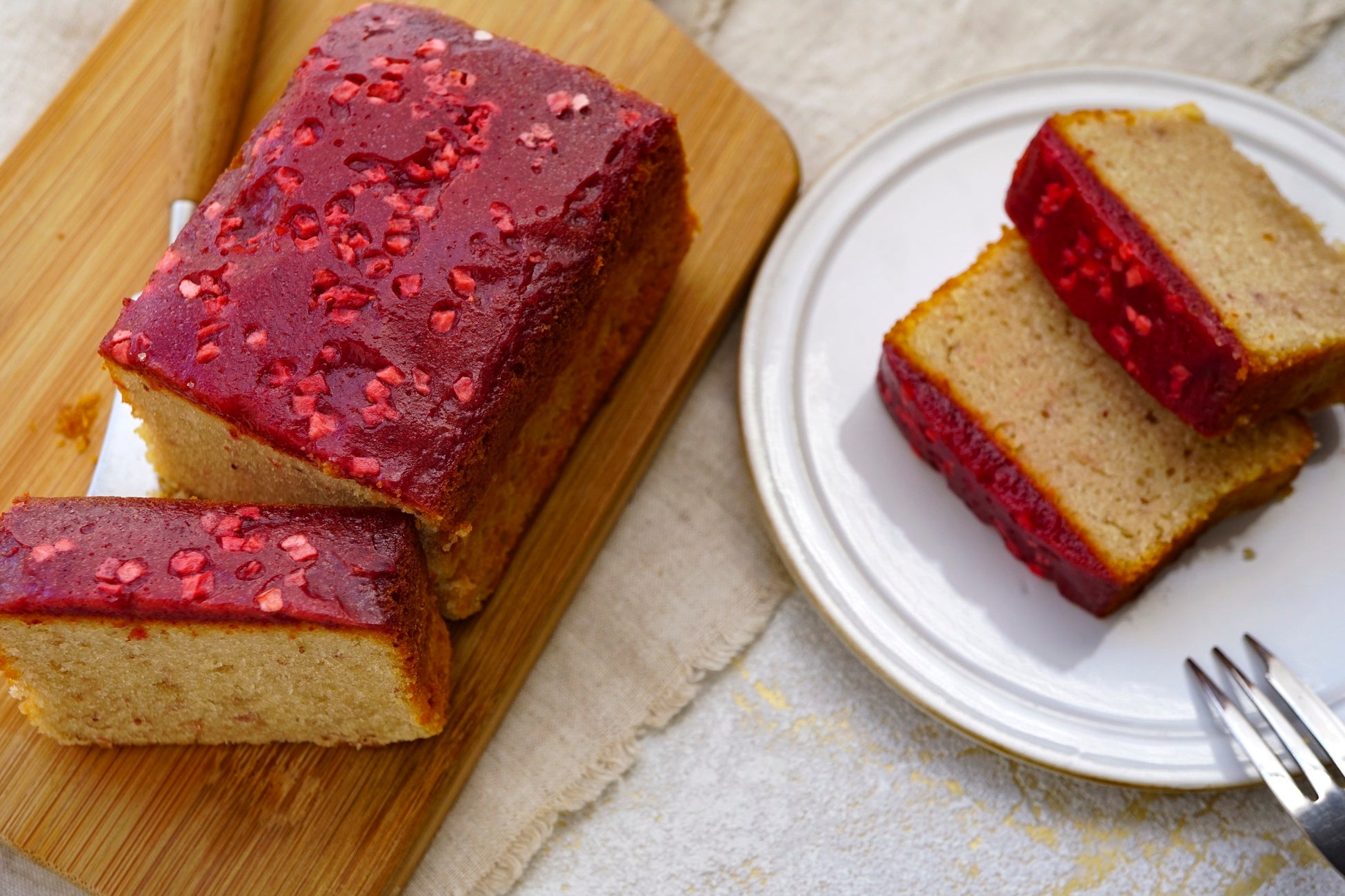 いちごの風味を最大限引き出すために、クラッシュしたいちご果肉と自家製のいちごジャムを混ぜ込んだ、しっとりとした食感のパウンドケーキです。さらに、食べた瞬間にいちごの風味がダイレクトに伝わるよう、ケーキの表面にもジャムを塗っており、いちごの甘酸っぱさを存分にお楽しみいただけます。紅茶やコーヒーと一緒に召し上がっていただくと、いちごの甘くてジューシーな香りがふわっと引き立ちます。