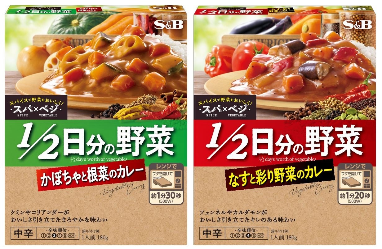エスビー食品株式会社は、「野菜摂取」と「カレーとしてのおいしさ」を両立させたレトルトカレー「スパ×ベジ 1/2日分の野菜 かぼちゃと根菜のカレー 中辛」「スパ×ベジ 1/2日分の野菜 なすと彩り野菜のカレー 中辛」を新発売します。