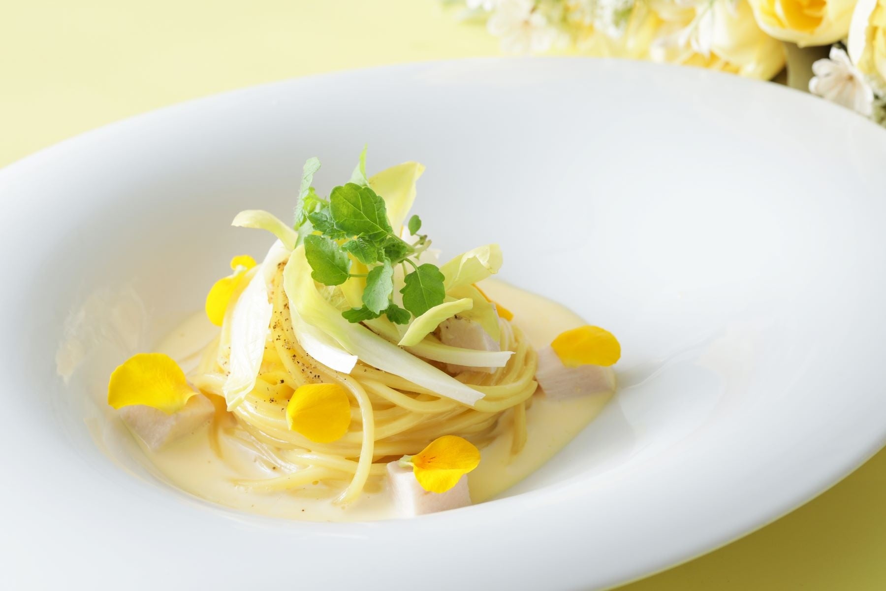 ・パスタ:三河鶏のさっぱりカルボナーラ