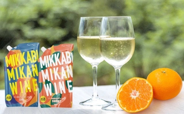 三ケ日みかんワインの甘口、辛口2種類のスパウトパックワインを限定発売。さらに同タイプの赤ワイン、白ワインとの飲み比べセットも特別価格にて販売。