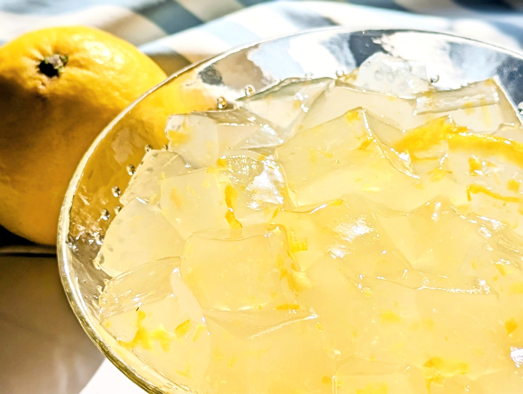 日向夏の風味が爽やかで、初夏にピッタリなゼリーです。オレンジピールのほろ苦さと香りが、日向夏の甘酸っぱさのアクセントになり、ファンも多い一品です。