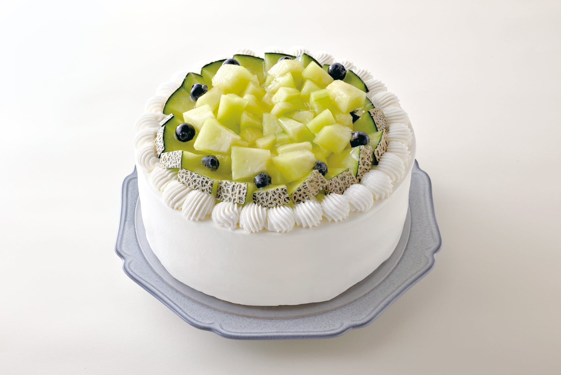 鉾田メロンのショートケーキ(写真は21㎝ホールケーキ) 1ピース 1,180円/1ホール12㎝ 3,900円