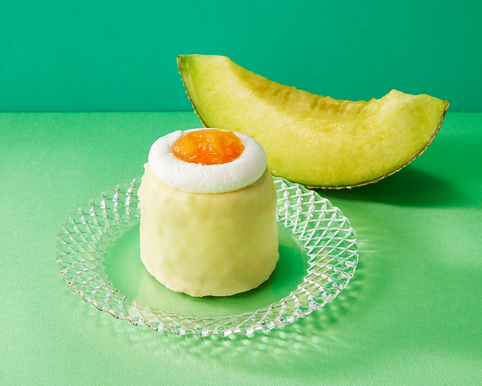 “肥後グリーンメロン”のしっかりとした甘みを堪能できる、メロンパフェをイメージしたデザートドリンク。オリジナルメロンソース入りのミルクにパンナコッタ、フィアンティーヌ※3を合わせることで、パンナコッタの弾力感やフィアンティーヌのサクサク食感が程よく口の中で調和する新感覚ドリンクです。トッピングのメロンソースがけホイップにウエファーを飾り、見た目もお楽しみいただける満足感のある1杯に仕上げました。
