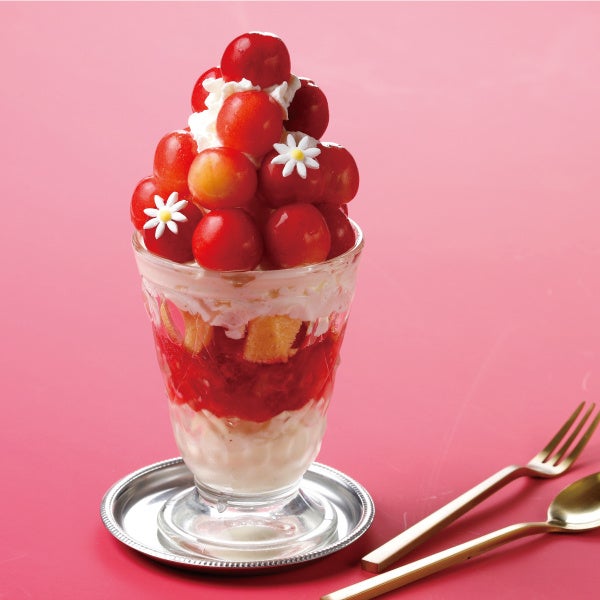 FUKUNAGA901が厳選した、甘酸っぱいアメリカンチェリーをふんだんに使用したパフェ。ローズとグリオットチェリーの自家製ソルベや、2種類のエスプーマを使い分け、緻密に計算された美味しさを重ねています。