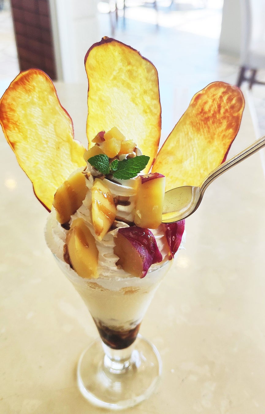 いろいろな食感のお芋が味わえる鳴門金時パフェ