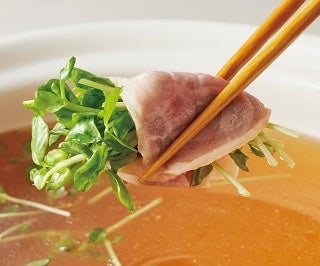 香味野菜をじっくり煮込んだ特製スープと牛肉の旨みに醤油、にんにくを加え、エキストラバージンオリーブオイルを加えた香り豊かな「オリーブオイルだし」。